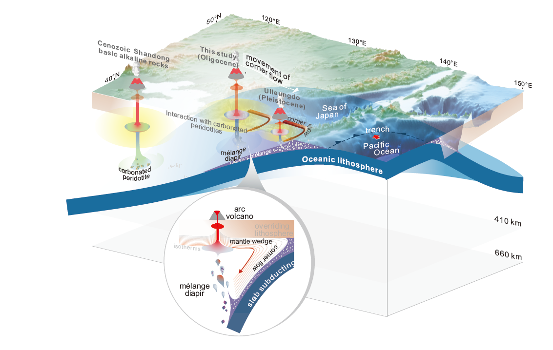 Ke-Chun Hong, Feng Wang*, Si-Wen Zhang, Wen-Liang Xu, Yi-Ni Wang, De-Bin Yang. Oligocene melting of subducted mélange and its mantle dynamics in northeast Asia. Geology (April 13, 2024). https://doi.org/10.1130/G52115.1.