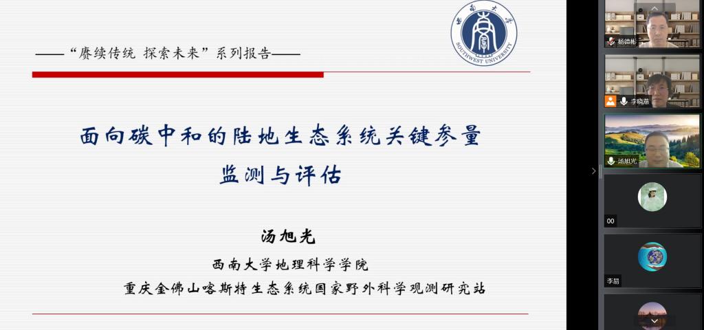 本次报告邀请到西南大学教授,博士生导师,重庆市巴渝学者青年学者汤旭光老师,报告的题目是“面向碳中和的陆地生态系统关键参量监测与评估”。报告会由优德88国土资源系李晓燕教授主持。