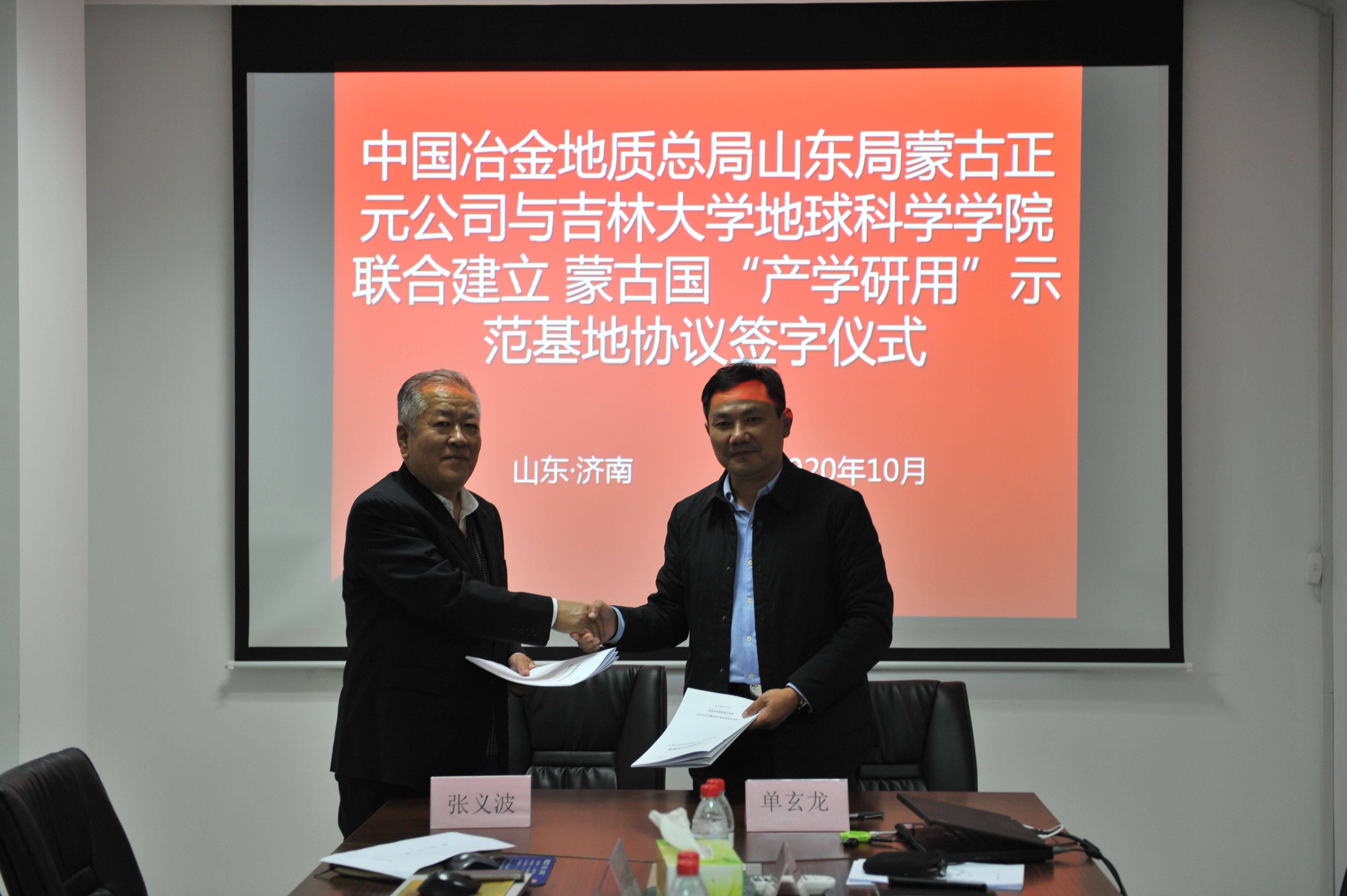 2020年10月16日,优德88经理单玄龙、党委书记杨洲等一行三人到蒙古正元公司进行交流座谈,双方就人才培养、联合立项、地质成果研究等多个方面展开讨论并达成共识。会间,双方签署了共建蒙古国“产学研用”示范基地协议。山东局地质科技部副主任谭延斌、蒙古正元公司总经理张义波等出席会议。
