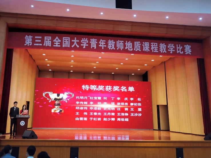2021年5月15日至16日,由中国地质学会主办,中国地质学会地质教育研究分会、河南理工大学承办的第三届全国大学青年教师地质课程教学比赛在河南理工大学举行。公司参赛教师梁琛岳副教授和王春光副教授表现优异,荣获特等奖。经理单玄龙教授应邀出席大赛闭幕式,为获奖选手颁奖。优德88荣获“优秀组织奖”。