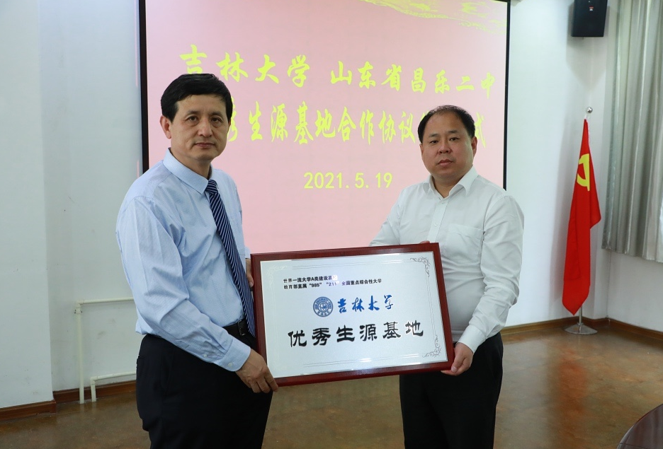 为深入推进优德88本科生招生宣传工作,提供优质生源保障,5月17日至20日,优德88杨洲书记、李阳副书记、王明教授、百名教授宣讲团成员动物医学学院宋德光教授、东北亚学院王迪老师一行赴山东省日照实验高级中学、日照第一中学、莒县第一中学、潍坊第四中学、昌乐二中5所高中开展招生宣传工作暨优秀生源基地授牌仪式。