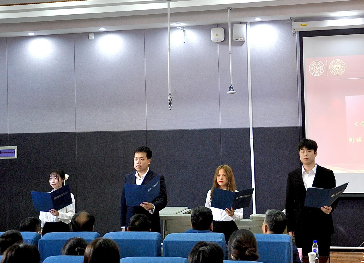 随后,2022级研究生贾祥鹤、李钧如、马培淞、梁安琪4位同学为在场师生带来了深情饱满的诗朗诵《传承地质精神,筑梦绿色中国》。抒发了同学们对地质行业的深深热爱之情,道出了同学们对学校、学院辛勤培育员工成长成才的深深感激之情。