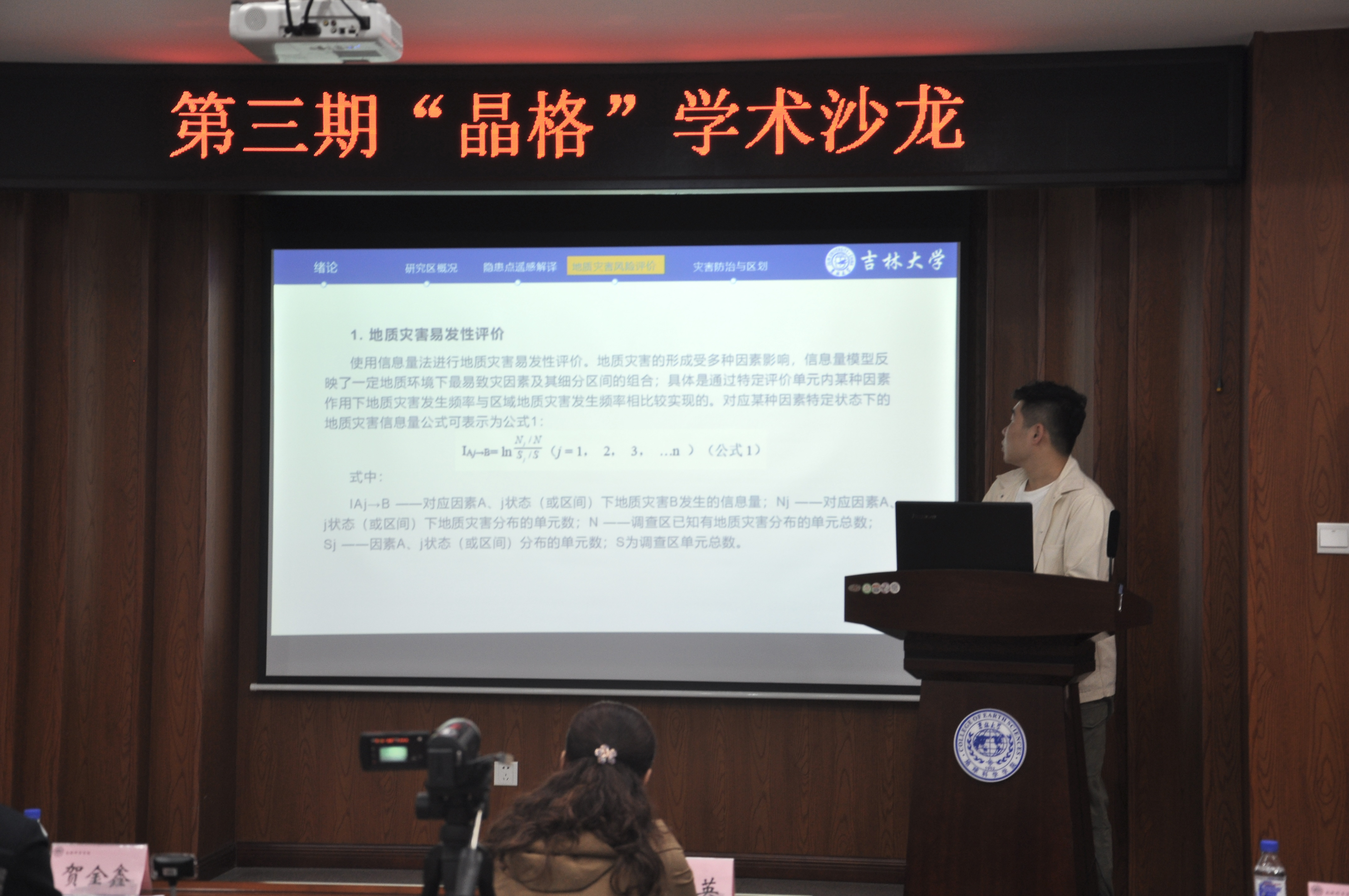 活动上,2022级地质学专业博士研究生燕群讲述了如何借助地质知识图谱实现智能地质分析和智能找矿预测。2021级地质学专业研究生张芯语分享了采用油页岩原位开采三维数值模拟,探讨影响油页岩原位开采的因素和最优原位开采方案。2021级矿产普查与勘探专业硕士研究生贾贺坤介绍了以遥感影像识别火星矿物的影响因素和问题,为探索火星地质演化过程与生命起源提供支撑。2020级数字地质科学专业硕士研究生逯燕乐分享了如何应用综合遥感技术方法识别与评价吉林省通化县的地质灾害风险。四位主讲人的分享鞭辟入里、严谨求实,引发参会同学深入思考。