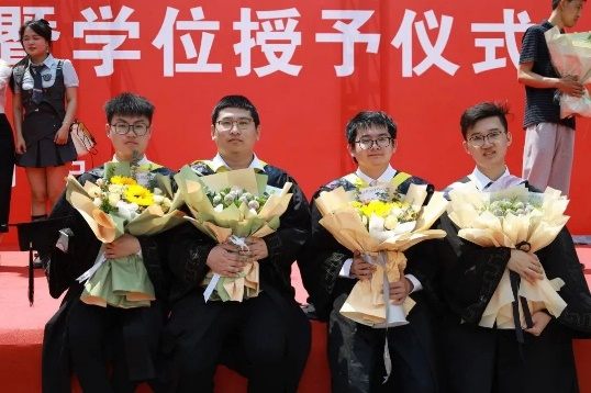 上午八点三十分,典礼正式开始。同学们穿着学士服,全体起立,摘下学士帽,奏唱国歌,伴随着庄严肃穆的歌声,23届毕业生毕业典礼正式拉开序幕。