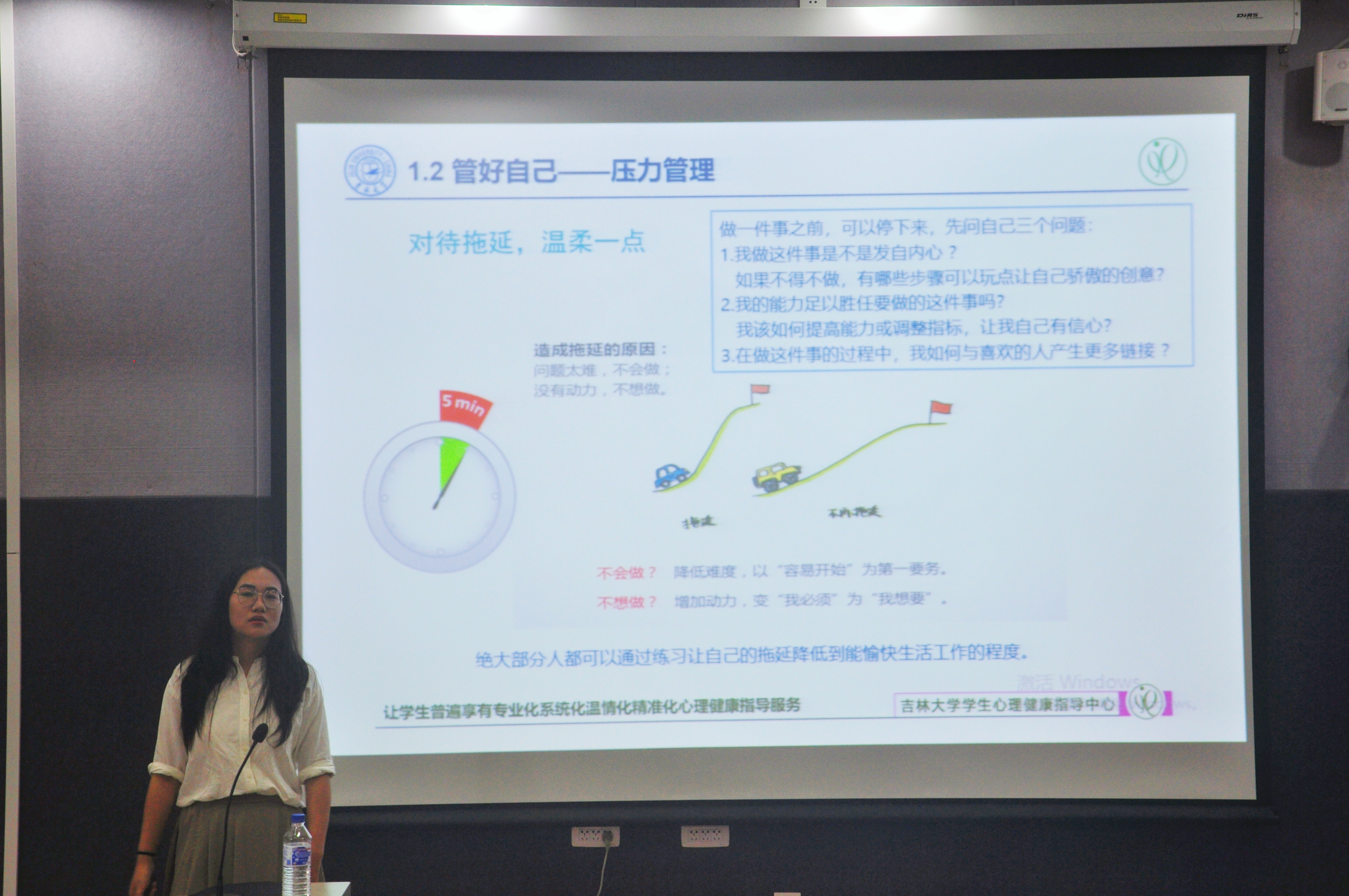 随后,张老师围绕心理健康知识的宣传普及、研究生心理健康的影响因素、增进心理健康的策略、学校的心理健康指导服务等内容,从“管理好自己”、“利用好资源”两个方面展开,强调了目标管理、压力管理和时间管理的重要性和意义,给出了如何利用知识资源、人际资源和专业资源的宝贵建议。最后,张老师呼吁同学们在遇到难以解决的心理问题时,应主动寻求帮助,借助专业的力量,优德88员工心理健康指导中心的大门永远向同学们敞开。