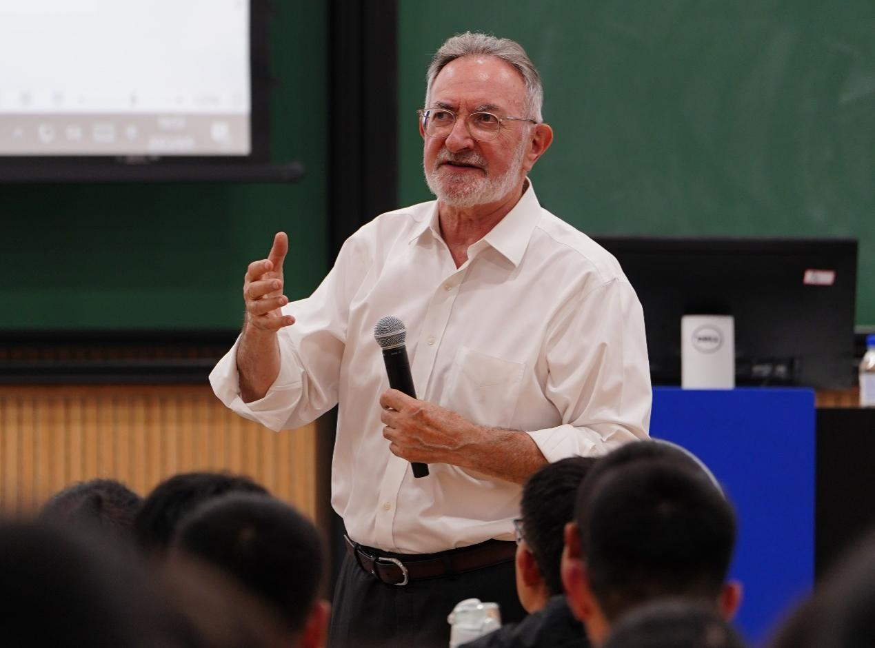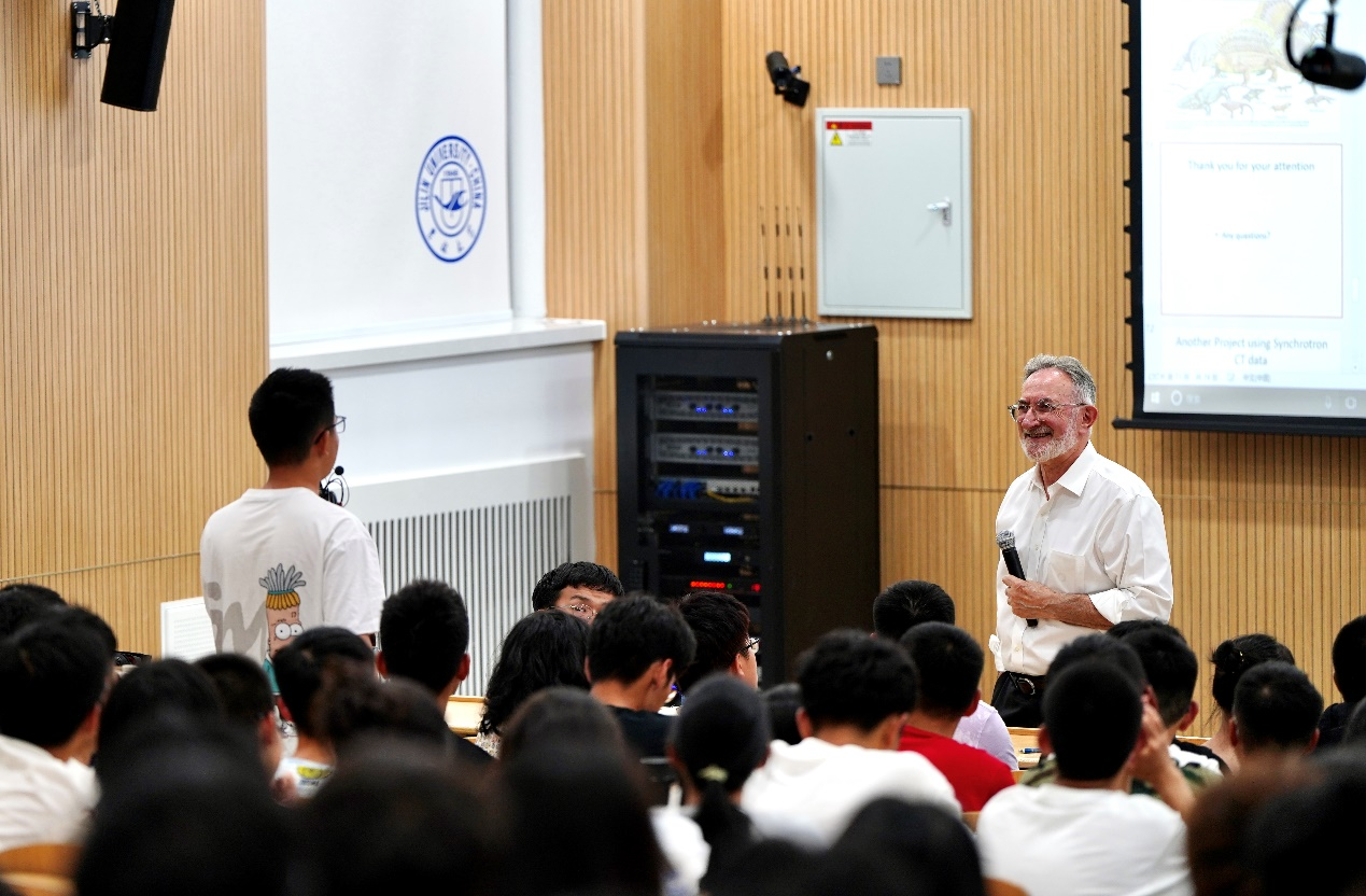 在提问环节,同学们针对自己感兴趣的问题与赖兹院士进行了交流,赖兹院士都一一进行了认真解答。当被问及何时开始研究大鼻龙时,他介绍在五十年前就接触过这个物种,但真正对大鼻龙的牙齿结构构造有了一定的探究结果,则是在三十多年前;当被问及如何成为一名古生物学家时,他则鼓励新生积极探索,在地质和古生物研究中发现更多有趣的问题和知识;当被问及这项研究可能对未来产生的影响时,他认为研究化石能为建立全球性的气候与环境变化预测模型提供有益的帮助,能有助于我们更好地了解现生生态体系的演化。当被问及本科生应具有什么精神才能做好科学研究时,他强调优德88具有良好的学科平台和优秀的团队队伍,鼓励广老员工努力学习,力争有所成就。赖兹院士坦诚且幽默的回答赢得了在场同学的阵阵掌声!
