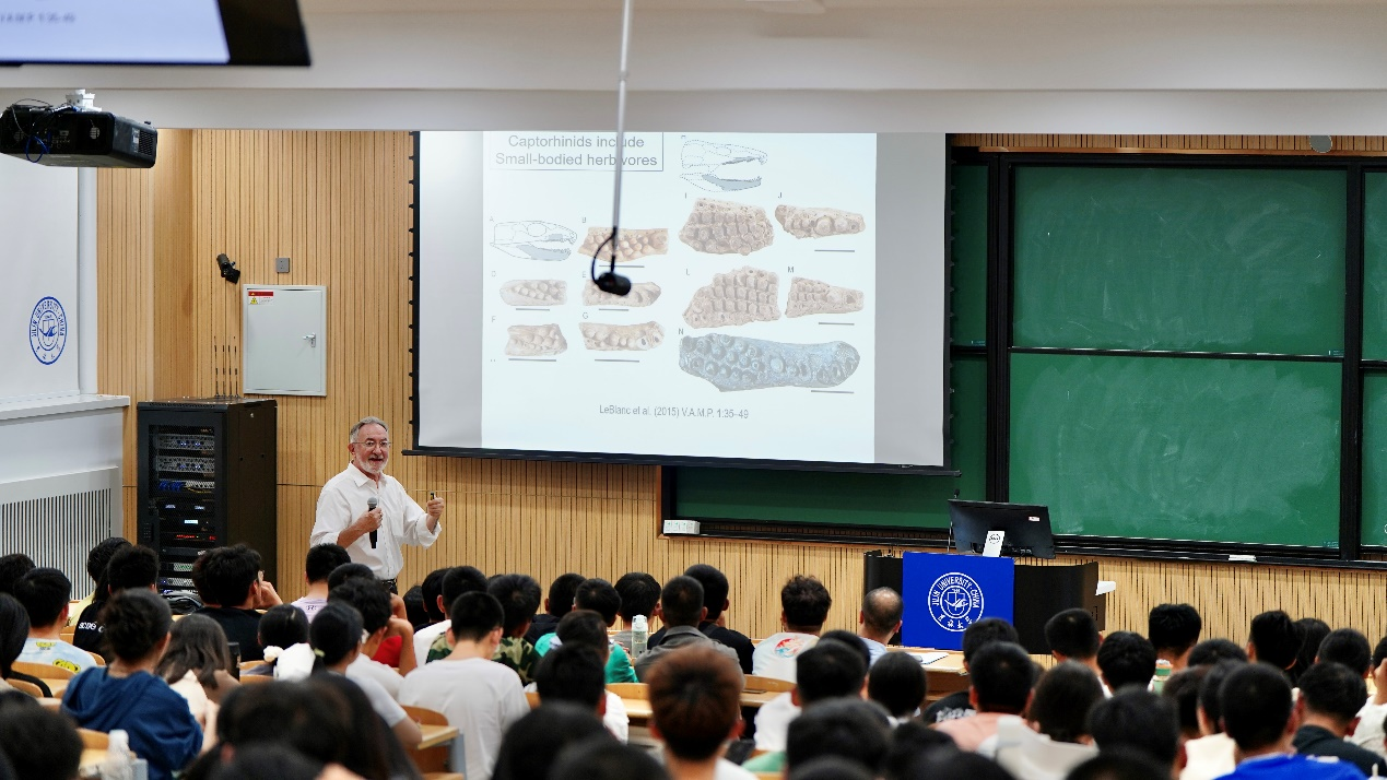9月9日,公司邀请国际著名古生物学家、加拿大多伦多大学古生物学特聘教授,优德88外聘杰出教授罗伯特.赖兹在敬信楼F6阶梯教室为2023级本科新生开展题为“如何研究远古爬行动物:以2亿8千万年前的大鼻龙为例”的科研启蒙讲座,学院副经理柳蓉、恐龙演化中心副主任陈军、地层古生物教研室主任李晓波、2023级辅导员杨凯凯及全体本科新生参加本次讲座。