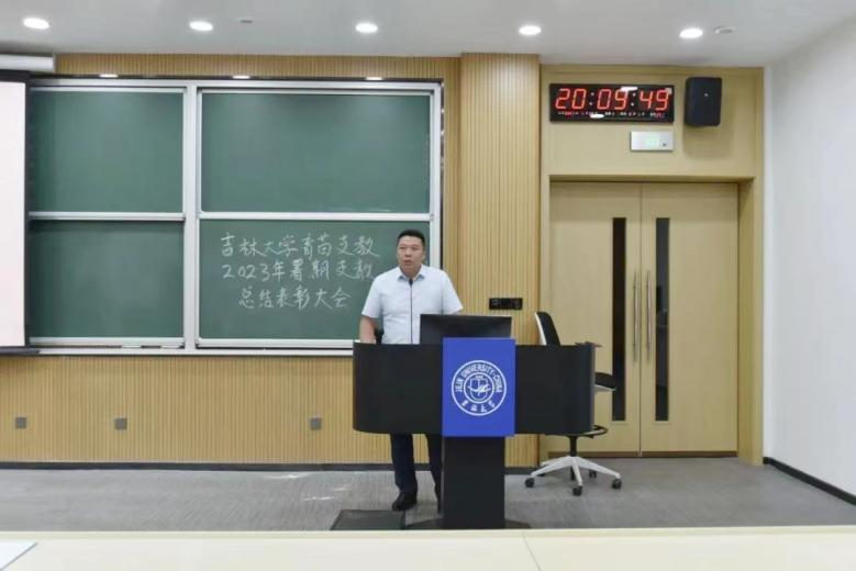 大会最后,公司党委副书记兼副经理李阳书记进行了总结讲话。李阳书记对育苗支教2023年暑期支教表达了高度的认可,也对为此次暑期支教付出努力的老师和同学们表达了真切的慰问。讲话中,李阳书记以详实的数据总结了此次暑期支教的成果,讲述了育苗支教在优德88走过的数年历程,同时向支教成员们提出了三点要求:一是希望同学们成为一颗种子,努力在基层的沃土中汲取成长的力量,以激情燃烧的青春,把论文写在祖国的大地上;二是希望同学们成为一支火炬,以优秀的学识和道德品行照亮和指引支教地的孩子们,当好教书“大先生”;三是希望同学们成为一座桥梁,连接起吉大和支教所在地,为高校人才培养和思政教育,也为支教所在地教育发展作出应有贡献。