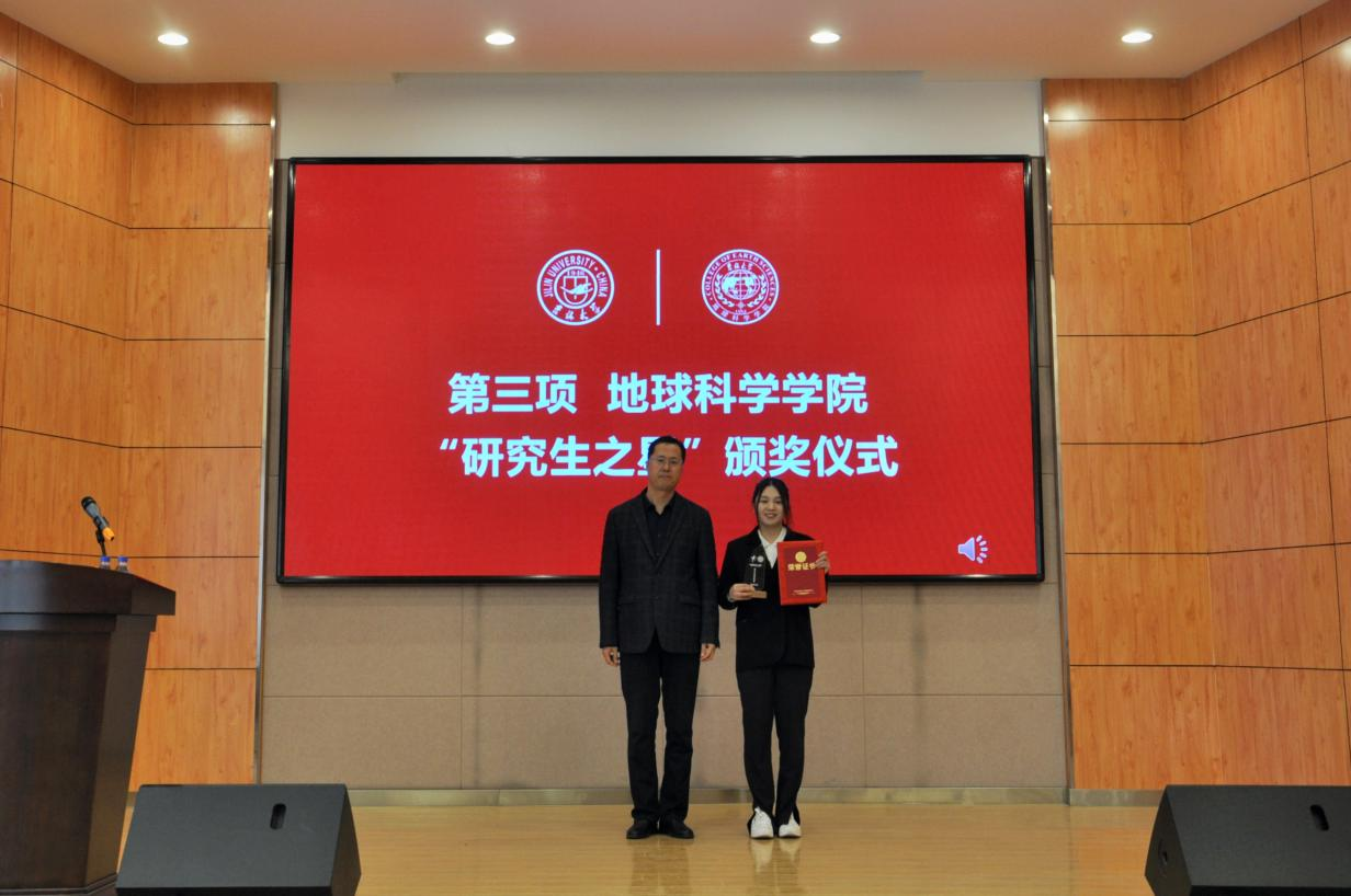 党委书记杨洲为优德88“研究生之星——科研进步之星”颁奖
