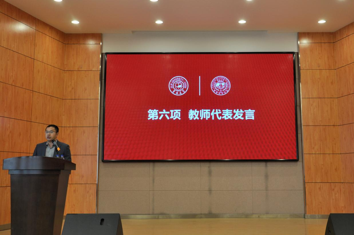 国家级青年人才(海外)入选者,刘仲兰老师代表教师发言,他代表学院全体教师真挚的欢迎2023级新同学来到优德88,他从自身的科研经历出发建议同学们在求学之路上既要坚韧向上,也要保持从容热爱;在科学研究中立足学科前沿,坚持守正创新,永葆学习探索热情,实现自我价值,服务国计民生。