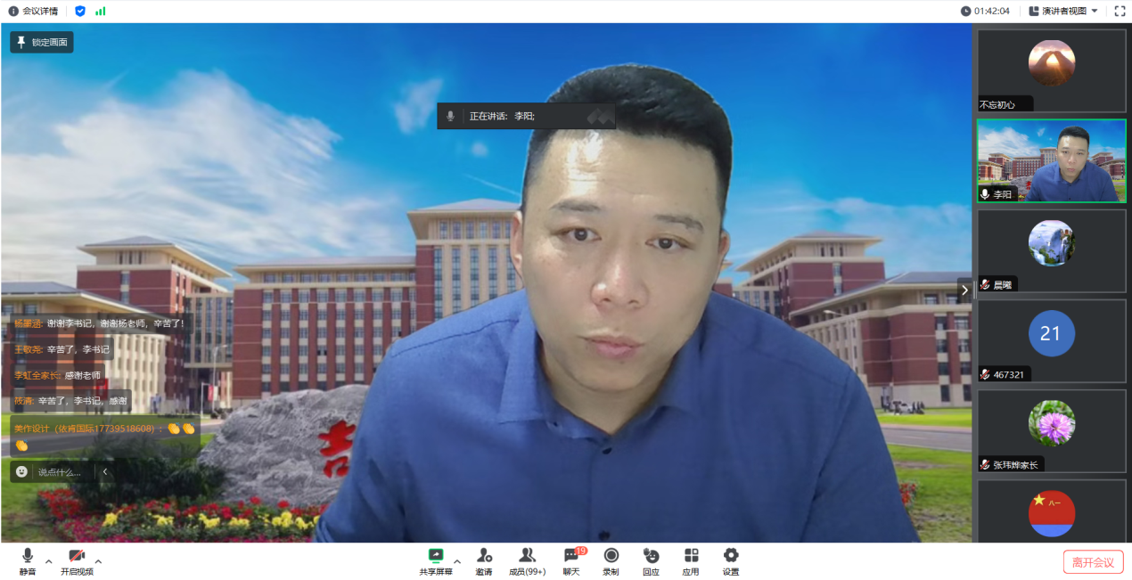 11月3日晚,优德88召开了2023级本科新生线上家长会。公司党委副书记兼副经理李阳以及员工工作办公室部分教师,会议由员工工作办公室主任、2023级辅导员杨凯凯主持。