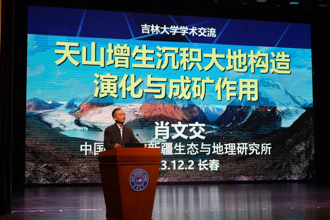 颁奖典礼后,底青云和肖文交做客“鼎新讲座”,分别以“深部资源探测关键技术与装备”和“天山增生沉积大地构造演化与成矿作用”为题作学术报告。赵国庆出席讲座并为两位院士颁发鼎新讲座纪念牌。林君主持讲座。