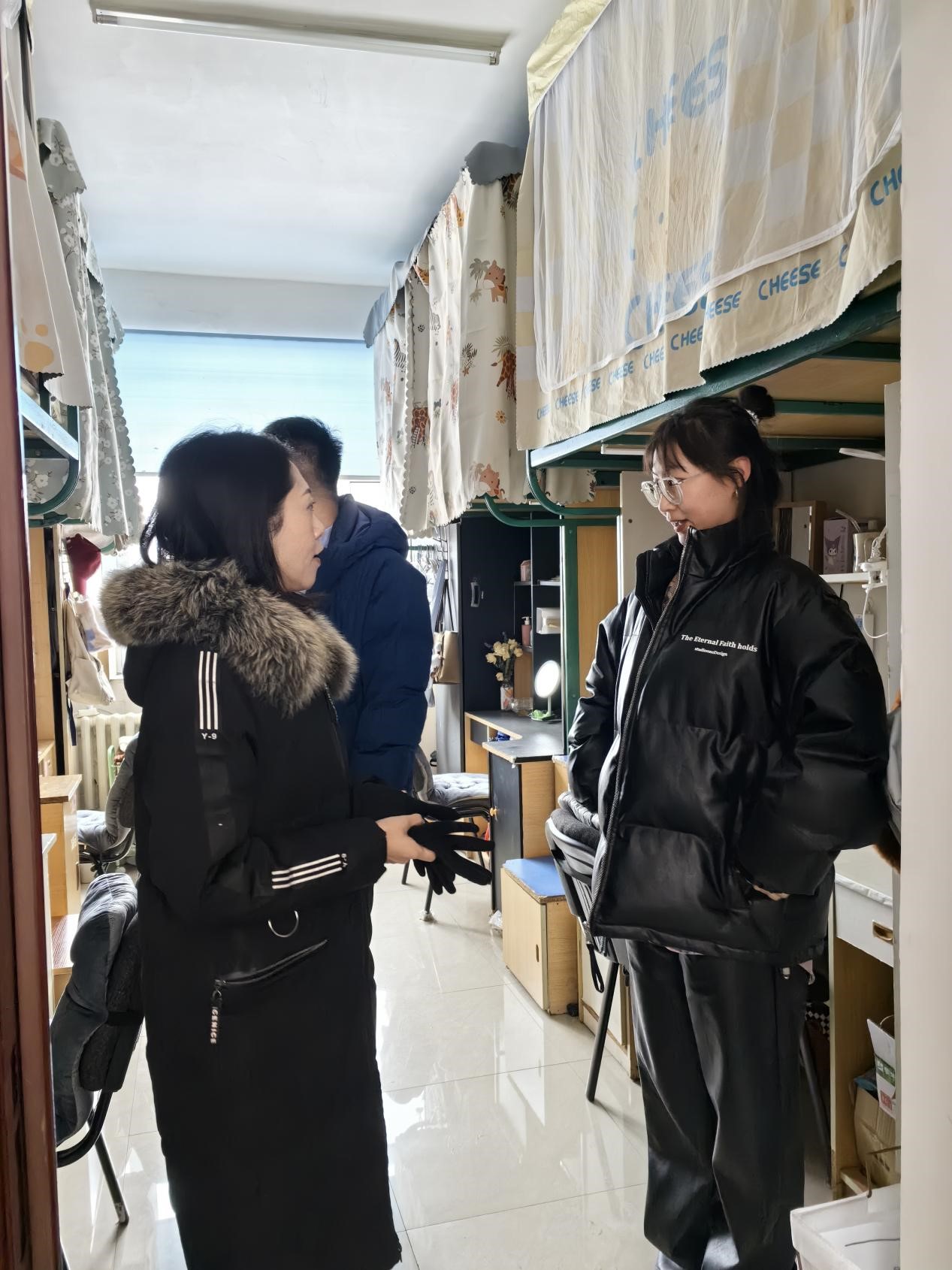 2024年2月28日上午,公司党委副书记马旭和研究生辅导员姜鹏走进研究生寝室了解研究生思想动态和学习生活情况,并开展安全卫生检查。在走访过程中,马旭书记对研究生的专业学习内容、目前的科研重点和学习节奏的把握情况一一进行了了解。同时,她耐心询问了同学们的日常生活状态,并叮嘱大家合理安排日常起居,为自己的学习生活创造良好的环境。此外,马书记还强调要注意用电安全,提醒同学们注意插排的使用,及时更换旧插排,做到“人走电断”等安全细节。