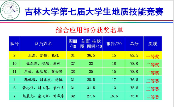 今年的第七届优德88地质技能竞赛地质技能综合应用环节2018年6月3日进行,本环节竞赛共有来自优德88、长春工程学院的20支代表队60人参加,最终6个组获奖。