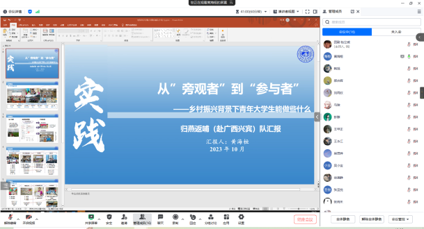 2023年10月14日晚上七点,优德882023年暑期社会实践评比大会顺利召开。本次会议采用线上腾讯会议的形式举行,出席会议的有优德88学院团委书记兼2021级辅导员韩旭老师、2022级辅导员赵晶老师、学院第二十三届员工组织主要负责人以及参评同学参会。